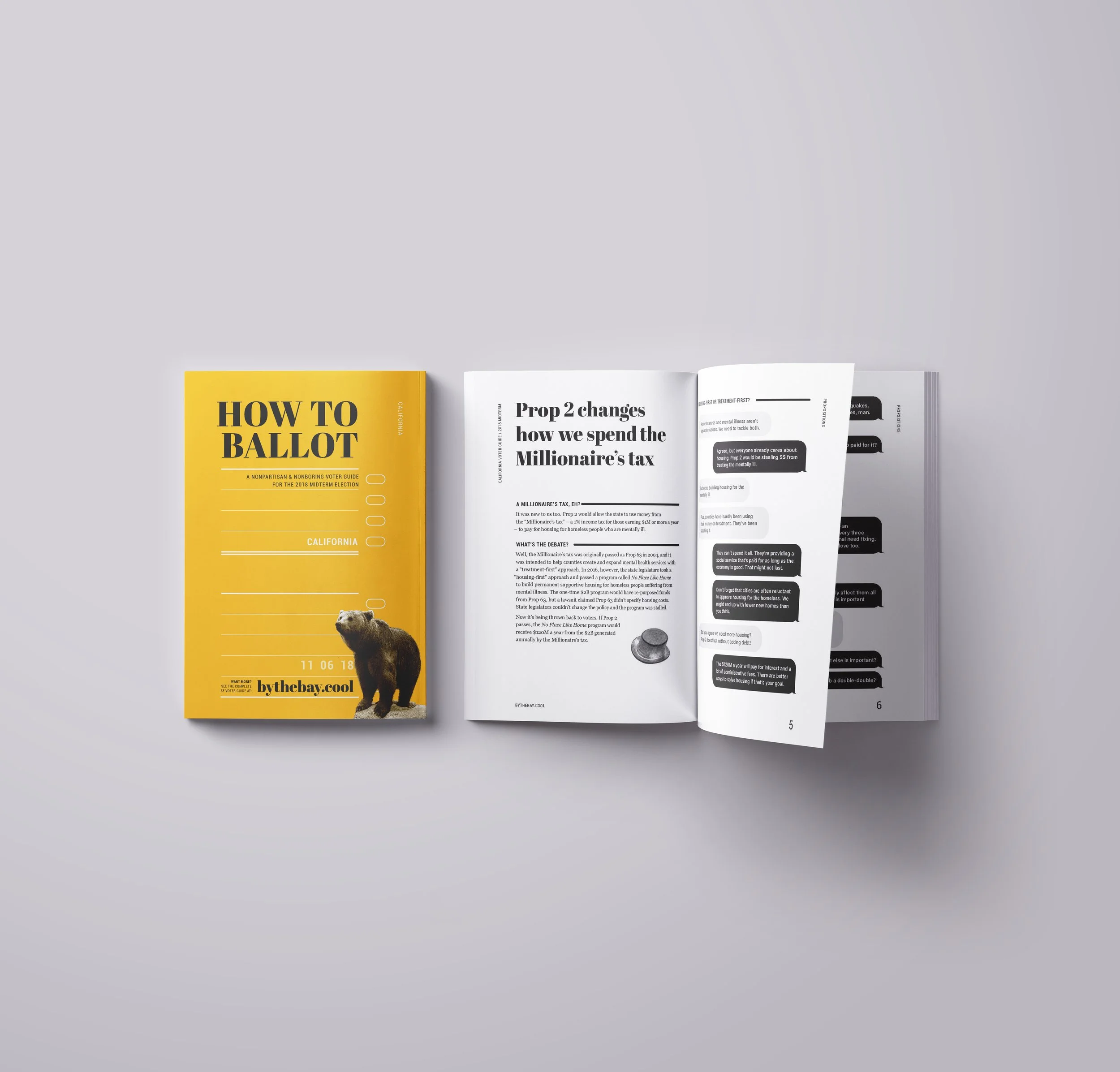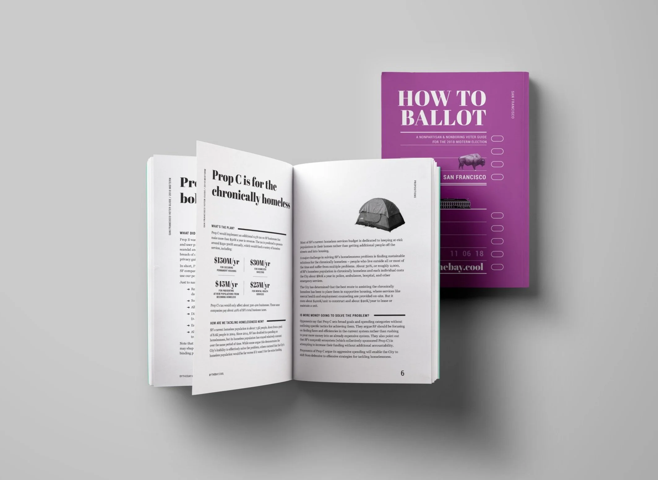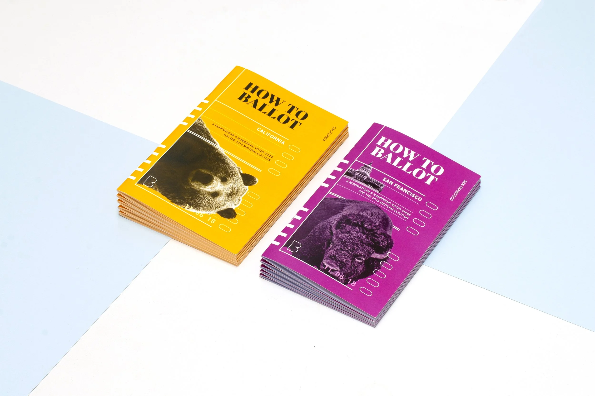 By the Bay makes voting easier (and less boring) for Bay Area residents. As half of the dynamic duo at Working Hard, we transformed their digital voter guide (ballot.fyi) into handy print booklets designed for note-taking, flipping, and handing out at events. 2,000 guides were distributed to voters across California and San Francisco.